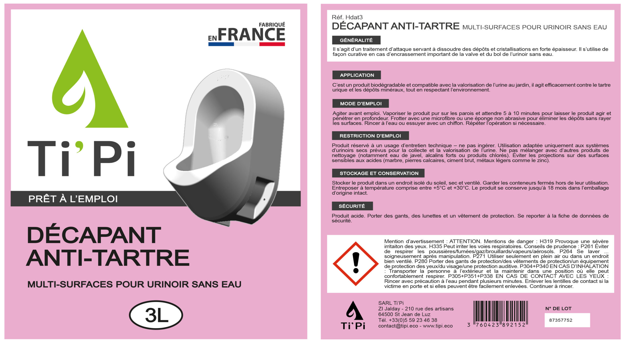 C’est un produit biodégradable et compatible avec la valorisation de l’urine au jardin, il agit efficacement contre le tartre urique et les dépôts minéraux, tout en respectant l’environnement.
