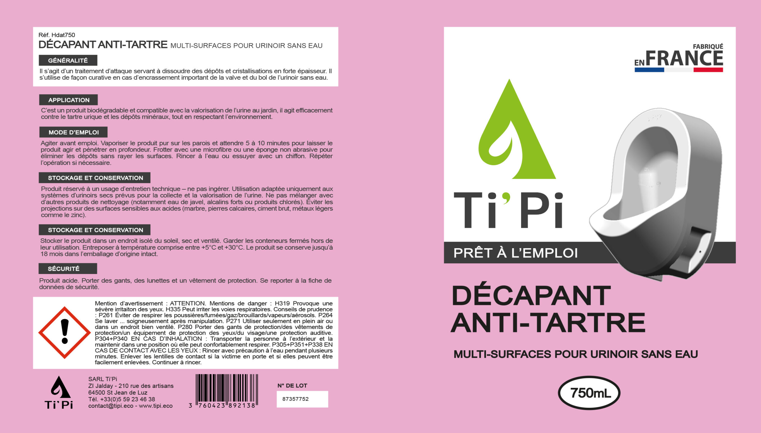 Il s’agit d’un traitement d’attaque servant à dissoudre des dépôts et cristallisations en forte épaisseur. Il s’utilise de façon curative en cas d’encrassement important de la valve et du bol de l’urinoir sans eau.